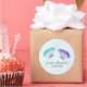 Autocollants de mariage avec un design romantique délicat. 2 élégants papillons aquarelles, peints en violet pastel et vert. Un petit coeur de polka rose les surplombe. Un arrière - plan d'aquarelle bleu clair avec des touches de rose clair.