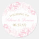 Le design élégant et romantique de l'autocollant de mariage rond comprend une bordure de fleurs de pivoine et des couleurs de rose, de champagne or et blanc. Personnalisez le texte personnalisé avec un monogramme des noms de mariée et de mariée et la date du mariage.