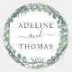 Sticker Rond Élégant Mariage de verdure géométrique Monogramme