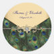 Sticker Rond Élégant Mariage Emerald Green et Gold Peacock
