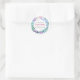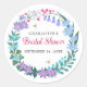 Cet autocollant rond élégant pour la douche de la mariée présente une belle guirlande florale composée de fleurs sauvages bleues, lilas, roses et entourée de petites abeilles à miel. Vous pouvez facilement personnaliser le nom de la mariée et la date en utilisant les outils en ligne de Zazzle. Si vous avez besoin d'aide pour personnaliser ces autocollants, n'hésitez pas à me contacter via Zazzle, s'il vous plaît.
