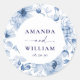 Sticker Rond Élégant Mariage Floral Bleu