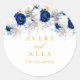 Sticker Rond Élégant Mariage floral bleu et jaune