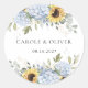 Sticker Rond Élégant Mariage Floral Blue Hydrangea Sunflowers