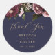 Élégant Sticker rond Bleu Bourgogne Floral Mariage Classic Midnight