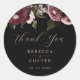 Élégant Sticker rond noir Bourgogne Floral Mariage classique