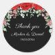 Sticker Rond Élégant Mariage Floral Noir Et Rouge