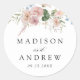 Ajoutez une touche spéciale à vos faveurs de mariage, invitations ou papeterie avec ces élégants stickers de mariage fleuri. Doté d'un délicat arrangement floral aquarelle au sommet, ce design est à la fois romantique et intemporel. Vos noms et votre date de mariage sont magnifiquement affichés ci-dessous, créant un souvenir personnalisé pour vos invités. Des teintes douces de rose poussiéreux, rose, bleu, violet, blanc et vert rendent ces autocollants parfaits pour les mariages du printemps et de l'été. Idéal pour sceller des enveloppes, décorer des sacs de faveur ou rehausser la décoration mariage, ces autocollants personnalisables sont un moyen élégant de cravate de votre thème mariage ensemble.