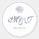 Sticker Rond Élégant Mariage Monogram Blue Shell