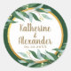 Élégant Sticker Arrondi Monogramme Mariage Vert Feuille Or Foliage Classic.