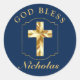 Sticker Rond Elégant Marine Blue Gold Boys Confirmation DIEU BL
