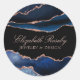 Sticker Rond Elégant Marine Blue Rose Gold Agate Geode Business