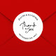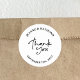 Sticker Rond Elégant Merci blanc Mariage Calligraphie Favoriser