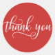 Sticker Rond Élégant Merci de calligraphie à script blanc rouge