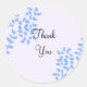 Dites merci avec ces élégantes vignes bleues et feuille merci les autocollants. Arrière - plan bleu doux. Le message peut être modifié si vous le souhaitez.