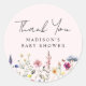 Sticker Rond Élégant Merci Fleur sauvage rose Baby shower