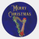 Sticker Rond Elegant Merry Christmas Music Harp Navy Blue
