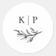 Sticker Rond Elegant Monogram Greenery Leaves Wedding