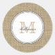 Sticker Rond Elegant Monogram Name Country Chic Style Burlap