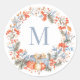 Sticker Rond Elegant Monogram Wreath Dusty Blue Modern