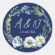 Sticker Rond Élégant Monogramme floral bleu marine Mariage d'hi