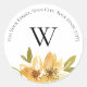 Sticker Rond Élégant Monogramme Floral Jaune Adresse de retour