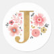 Sticker Rond Élégant Monogramme Floral Rose Lettre initiale J