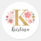 Sticker Rond Élégant Monogramme Floral Rose Lettre initiale K