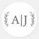 Sticker Rond Élégant Monogramme Initiales Mariage Adresse de re