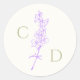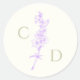 Sticker Rond Élégant Monogramme Lavande Delphinium Floral
