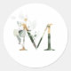 Sticker Rond Élégant Monogramme M Mariage Stationnaire Vert