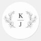 Sticker Rond Élégant Monogramme Mariage initial de feuille bota