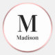 Sticker Rond Élégant Monogramme noir et blanc rose avec nom