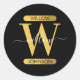 Sticker Rond Élégant Monogramme noir & or Script moderne