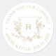 Sticker Rond Élégant Monogramme Or Crest Mariage Merci