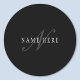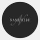 Sticker Rond Élégant Monogramme Personnalisable | Noir Gris Bla