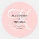 Ces autocollants de mariage élégants ont un arrière - plan à la mode couleur quartz rose rose, et un grand monogramme de calligraphie blanche.