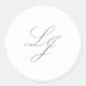 Sticker Rond Élégant Monogramme Simple Script Sage Mariage vert