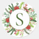 Sticker Rond Élégant Monogramme Vacances hiver Wreath