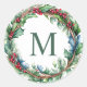 Sticker Rond Élégant Monogramme Vert Première couronne de Noël