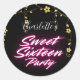 Sticker Rond Elégant néon rose noir rétro doux 16e anniversaire
