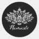 Sticker rond classique Lotus Yoga Namaste noir & blanc élégant.