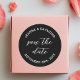 Sticker Rond Élégant noir Enregistrer la date Faire-part Mariag
