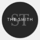 Sticker Rond Élégant noir et blanc Monogramme initial personnal