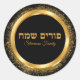Sticker Rond Elégant noir et or juif Joyeux Purim