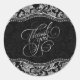 Sticker Rond Elégant noir & métal argenté Damas Merci