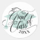 Design élégant et élégant autocollant de graduation avec les mots "Grad Class of" dans un élégant arrangement de style de script de classe en noir avec un capuchon de graduation incorporé dans le design typographique et un capuchon de graduation de feuille vert faux menthe dans l'arrière - plan. Customisez avec votre année de graduation.