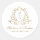 Sticker Rond Élégant or Floral Crest Monogram Mariage