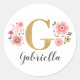 Sticker Rond Élégant or rose floral Monogramme initial Lettre G