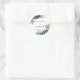 Sticker Rond Élégant, Palme Verte, Bordure Or (Imitation)